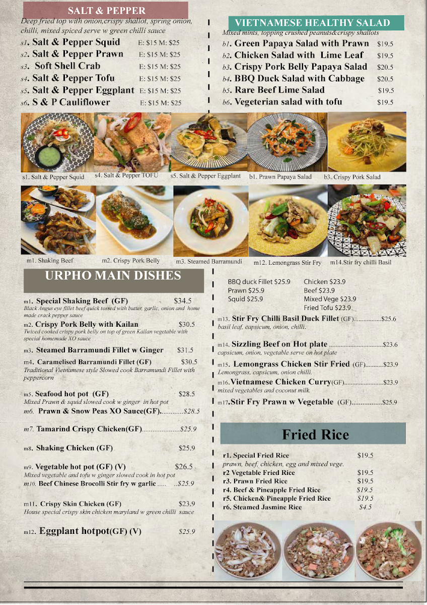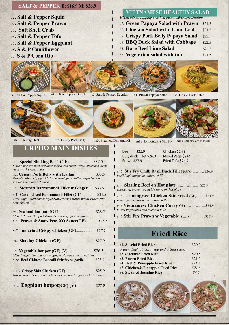 For those looking to enjoy a hearty, satisfying meal, Ur Pho offers Special Shaking Beef and Crispy Pork Belly with Kailan among their Ur Pho Main Dishes. The Stir Fry Chilli Basil Duck Fillet and Steamed Barramundi Fillet with Ginger are also standout options, offering a range of flavors that showcase the richness of Vietnamese cuisine.